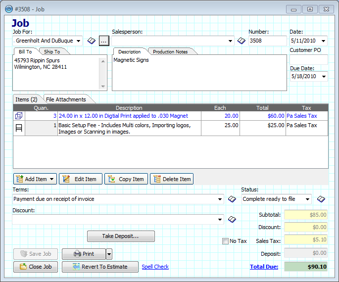 | Job Tickets | Create a job just like you would create an estimate, if you are taking an immediate order. |