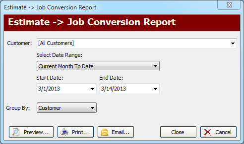 | Conversion Report | See how well you have been converting estimates to jobs over time. |